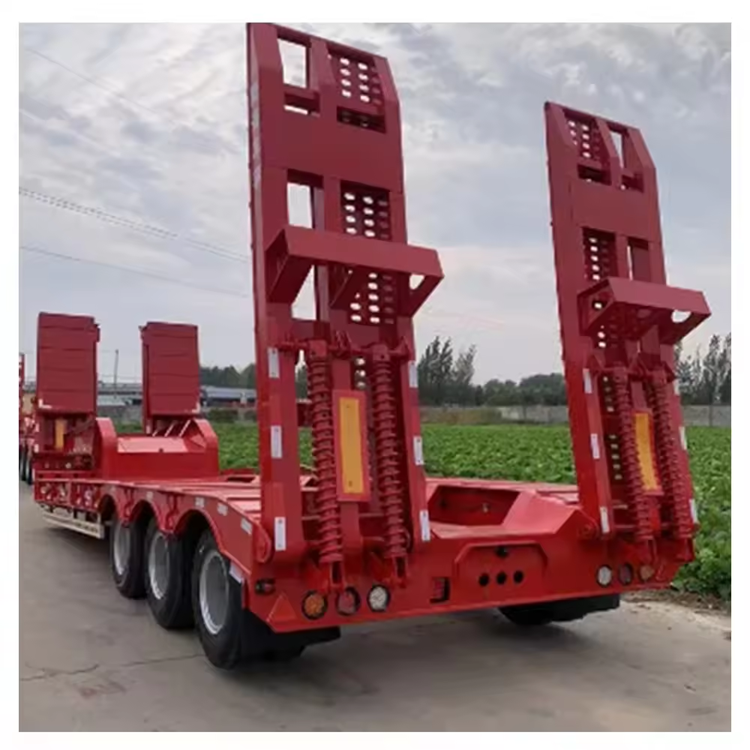 รถพ่วงกึ่งพ่วงแบบ Lowboy 100 ตัน แบบ Gooseneck ขนาด 25 50 80 ตัน แบบถอดประกอบได้ พร้อมระบบไฮดรอลิก สำหรับขนส่งรถขุด