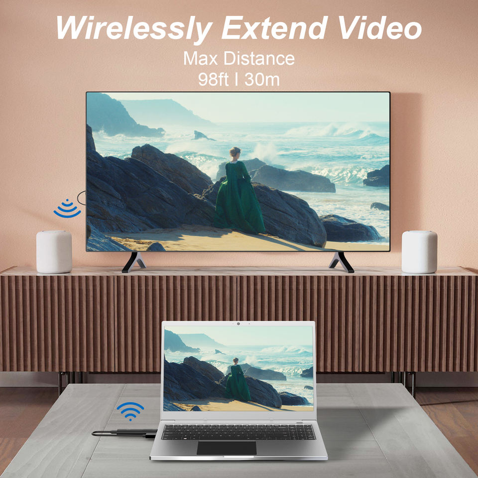 เครื่องส่งและตัวรับสัญญาณ WiFi แบบไร้สาย HD ความหน่วงต่ำ4K สำหรับอุปกรณ์ดิจิตอลโปรเจคเตอร์แล็ปท็อปเครื่องขยาย