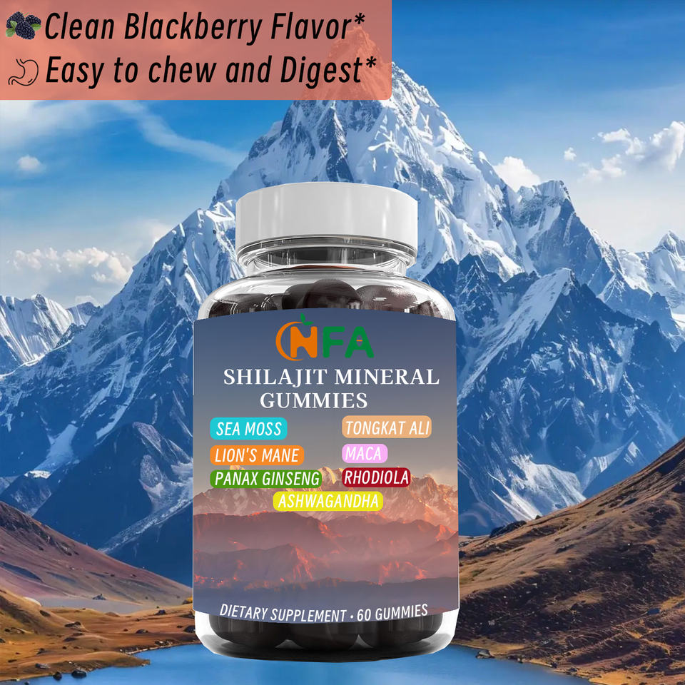 กัมมี่จากแร่ชิลาจิตธรรมชาติช่วยเพิ่มการฟื้นตัวของกล้ามเนื้อขนมรสแบล็กเบอร์รี่เคี้ยวและย่อยง่าย