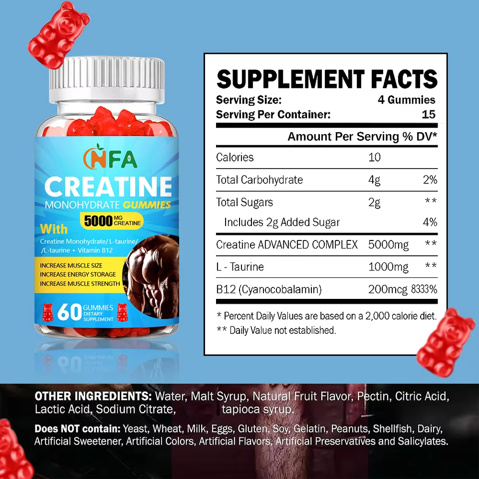 อาหารเสริมเพื่อสุขภาพราคาประหยัด ครีเอทีน โมโนไฮเดรต แบบกัมมี่ ช่วยเพิ่มความแข็งแรงและพลังสำหรับนักกีฬา