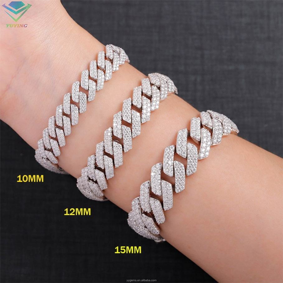 สร้อยข้อมือเพชรโมอิสซาไนต์แบบชุบทองคำขาว S925 ขนาด 8 มม.-15 มม. 2 แถว ราคาถูกที่สุด สำหรับผู้ชายสไตล์ฮิปฮอป