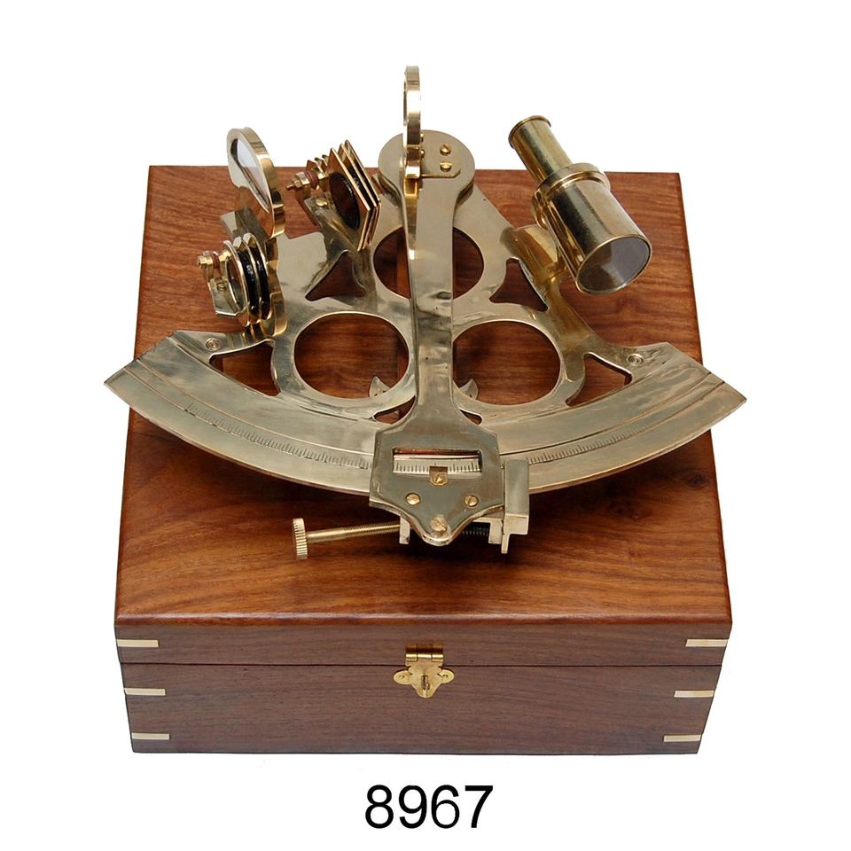 Sextant ทองเหลืองจากทะเล,พร้อมกล่องไม้โบราณสำหรับตกแต่ง