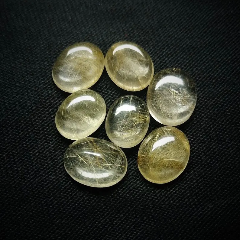 อัญมณีควอทซ์พลอยทับทิมสีทองธรรมชาติขนาด10มม. 12มม. อัญมณีทรงรีเรียบ