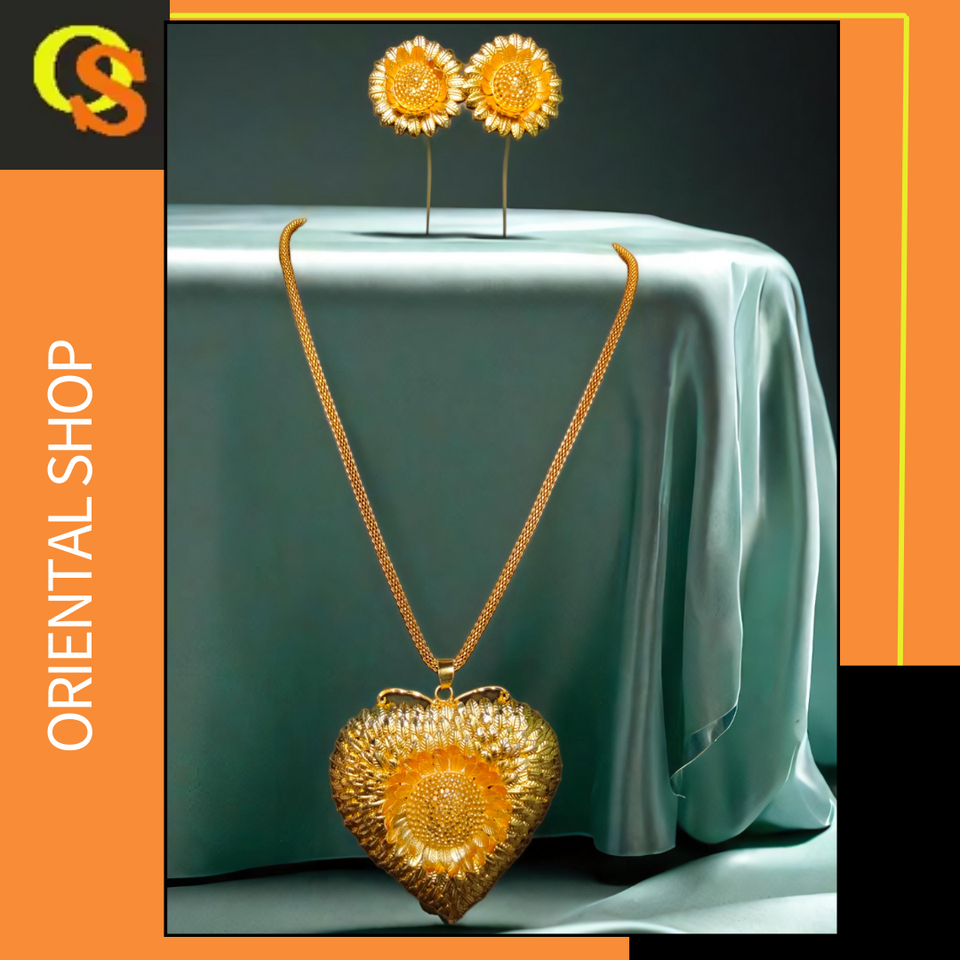 ชุดต่างหูสร้อยคอพร้อม22Ct สีทองชุดต่างหูสร้อยคอดีไซน์พรีเมียมเครื่องประดับสำหรับผู้หญิง