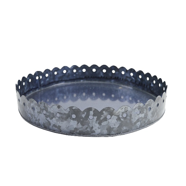Galvanized Metal Oval Tray with Round Border Net Desighn
