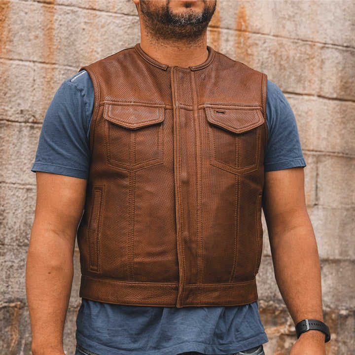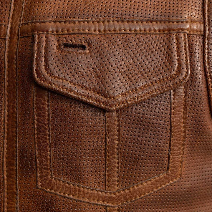 เสื้อกั๊กหนังมอเตอร์ไซค์แบบมีรูระบายอากาศสำหรับผู้ชาย รุ่น Lowside สีคอนยัค