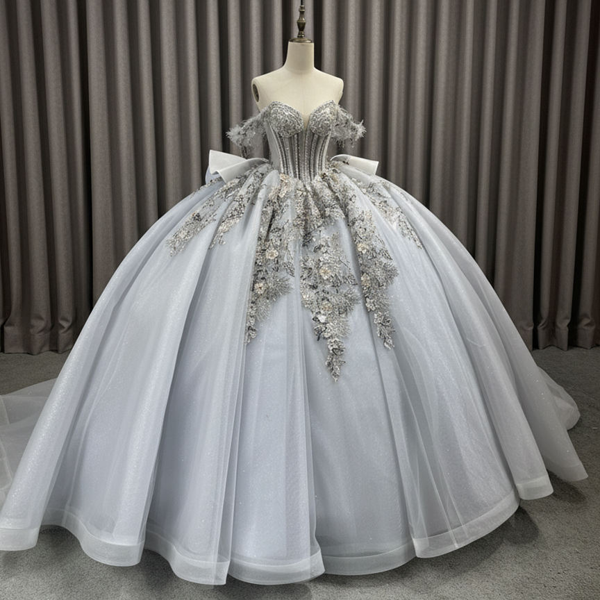 Lsmc115ชุดเดรสออกงานสำหรับคุณแม่, ชุดเดรสออกงานแบบพรอมสีฟ้าสไตล์เม็กซิกัน