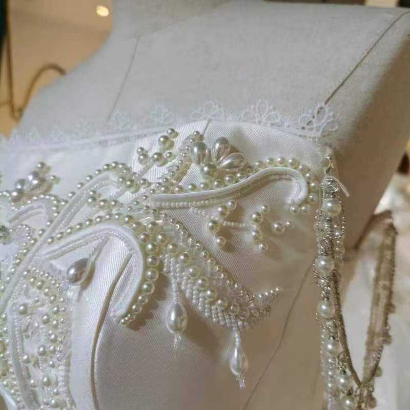 ชุดแต่งงานสุดหรู Lsml027 แบบไร้สายรัดไหล่ ประดับลูกไม้ ผ้าซาติน แบรนด์ Jancember