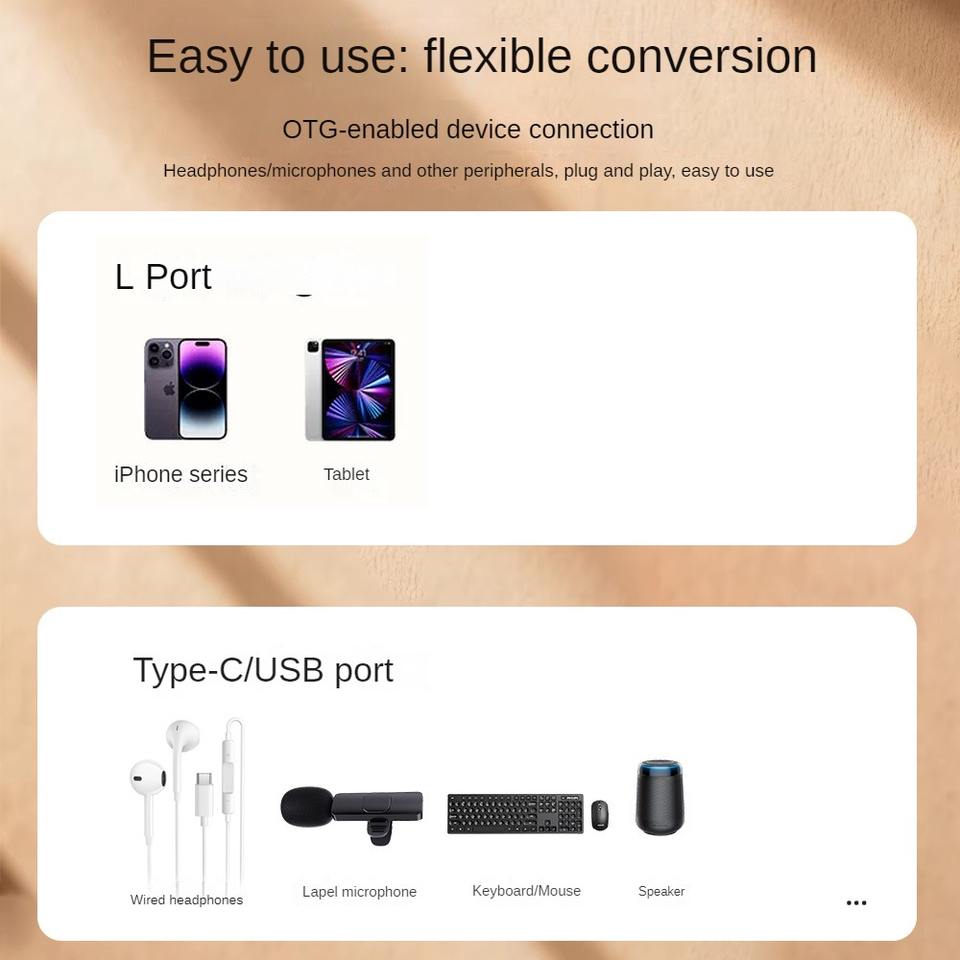 อะแดปเตอร์ Lto Type C OTG แปลงสัญญาณเสียง HiFi สำหรับ iPhone iPad ซิงค์ข้อมูล ไมโครโฟน ยูเอสบีดิสก์ เมาส์ คีย์บอร์ด เชื่อมต่อ ถ่ายโอนไฟล์