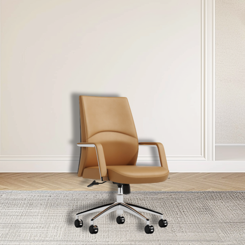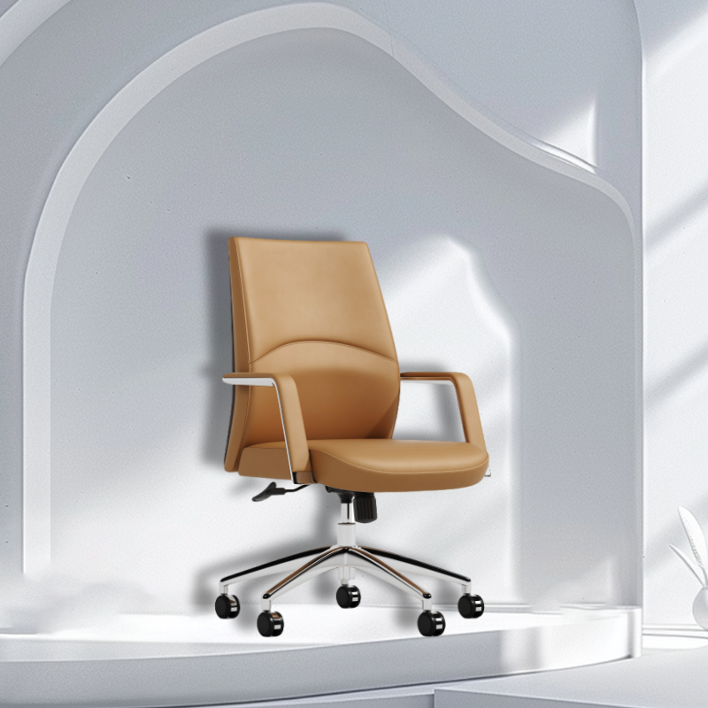 Lu เก้าอี้หนังหลังกลางแบบหมุนได้สำหรับประชุมสำนักงานทำจากโฟม PU นุ่มเหมาะกับสรีระ