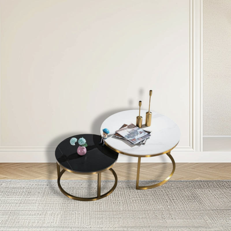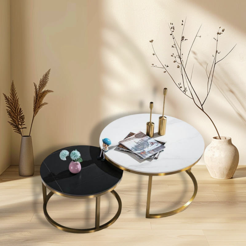 ชุดโต๊ะกาแฟคู่เหล็กกล้าคาร์บอนหินเผาซินเทอร์ด รุ่นโมเดิร์น ยี่ห้อ Lu Hotsale สำหรับห้องนั่งเล่น