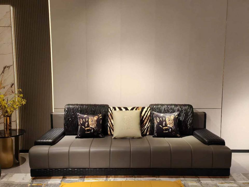 Lu โซฟาหนังสี่ชุดทำจากหนังสำหรับห้องนั่งเล่นดีไซน์โค้งหรูหราทันสมัยได้รับแรงบันดาลใจจากคีย์เปียโน