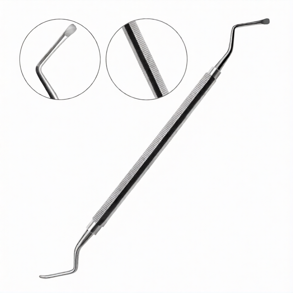 เครื่องมือขูดกระดูกลูคัส # เครื่องมือผ่าตัดทางทันตกรรมแบบใช้มือ ด้ามจับหกเหลี่ยม ปลายสองด้านขนาด 3 มม. 86 ชิ้น สำหรับการขูดกระดูก