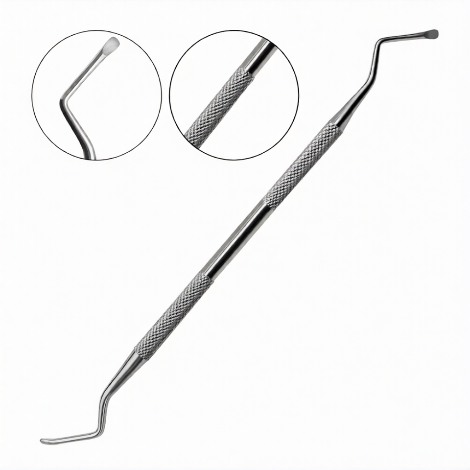 เครื่องมือขูดกระดูกสแตนเลสแบบแมนนวลของลูคัส # เครื่องมือผ่าตัดทางทันตกรรมแบบปลายช้อนเรียบ 88 ชิ้น ขนาด 5 มม. สำหรับการถอนกระดูก