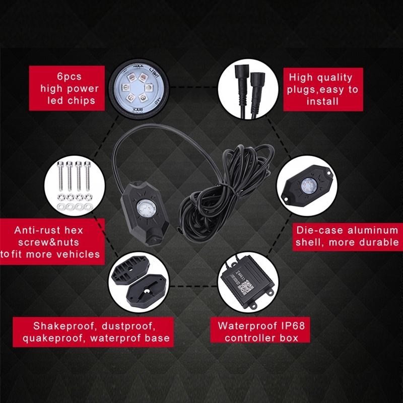 ไฟสำหรับรถกระบะ อุปกรณ์ตกแต่งรถบรรทุก แอพบลูทูธ สำหรับรถออฟโรด - 4 ชุด 32 หลอด LED ไฟตกแต่งรถบรรทุก ไฟร็อค 12v