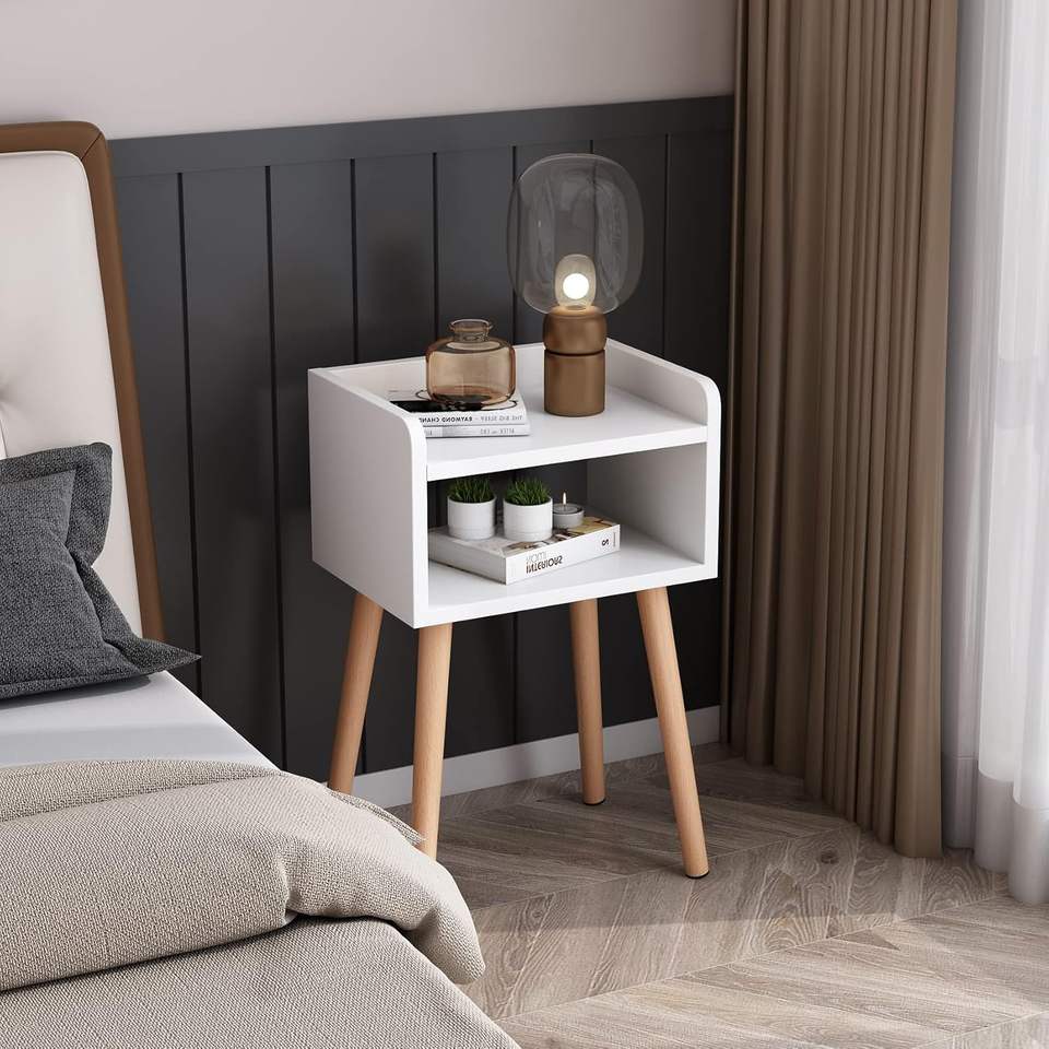 โต๊ะข้างเตียงลัคโนค ทำจากไม้เนื้อแข็งคุณภาพสูง พร้อมชั้นวางของแบบเปิด สำหรับเฟอร์นิเจอร์ห้องนอน