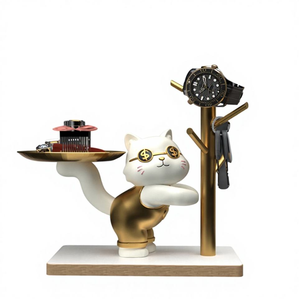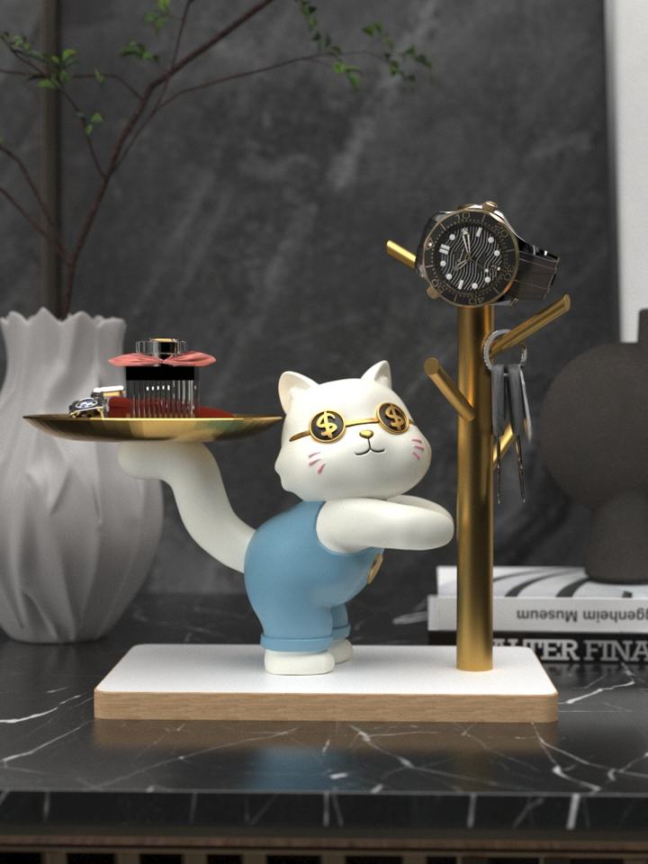 แมวนำโชค งานประติมากรรมเรซิ่นอีพ็อกซี่ ศิลปะพื้นบ้าน ถาดเก็บกุญแจหน้าประตู ของตกแต่งบ้าน ของประดับห้องนั่งเล่น ของสะสมสำหรับบ้านใหม่