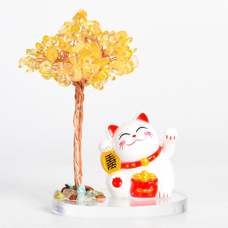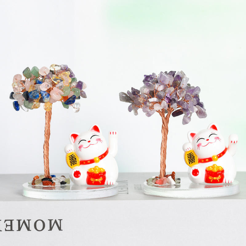 Keyword:Natural Crystal Tree Lucky Cat Money Tree Crystal Crafts
