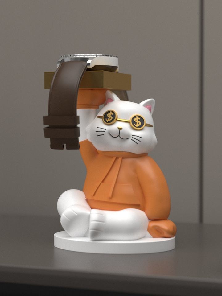 เครื่องประดับแมวโชคดีที่ชาร์จนาฬิกาหัวเว่ยฐานชาร์จ GT4งานฝีมือเรซิ่นชั้นเก็บของในรูปปั้นนักบินอวกาศสไตล์ความรัก