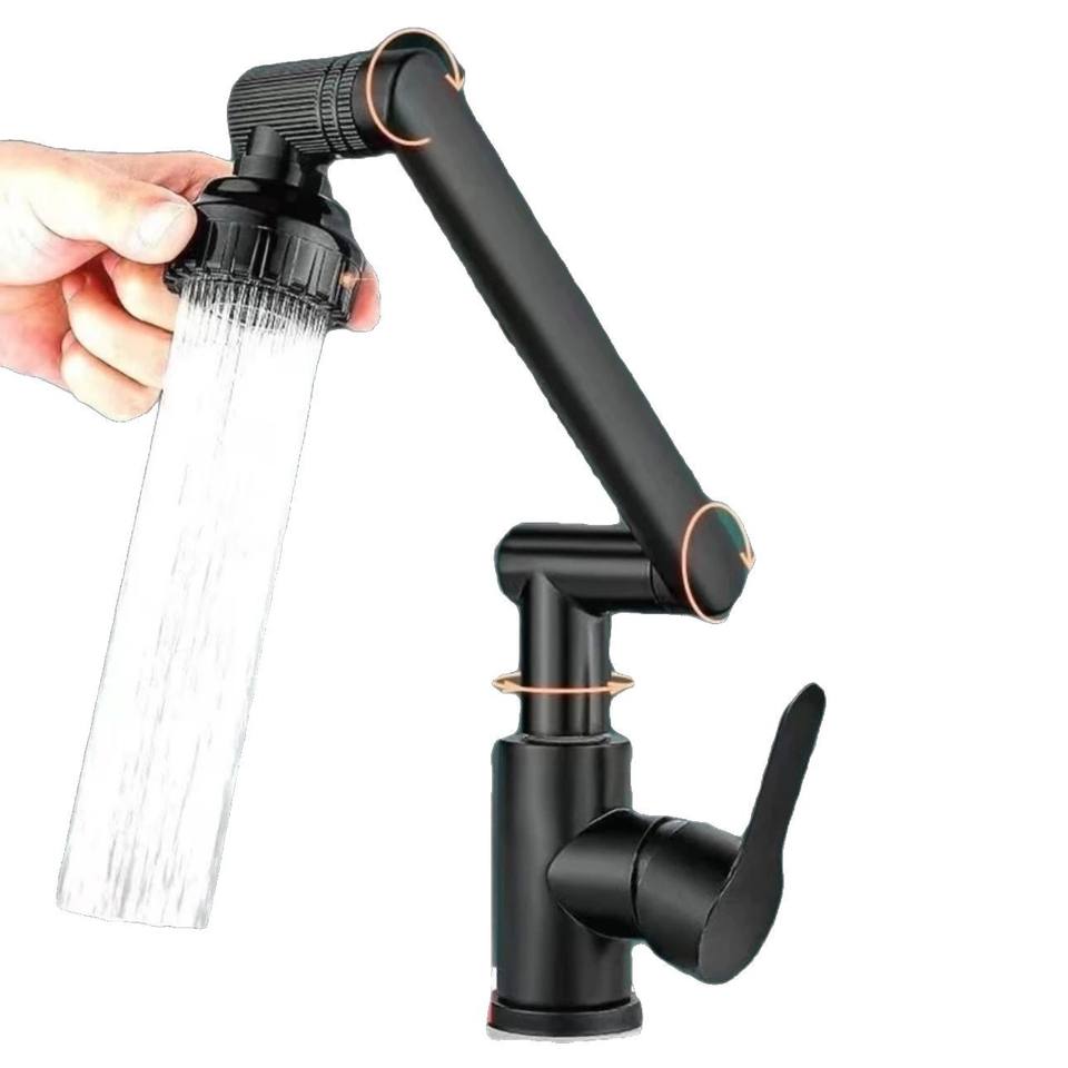 Robotic arm omnidirectional rotating hot and cold water faucet