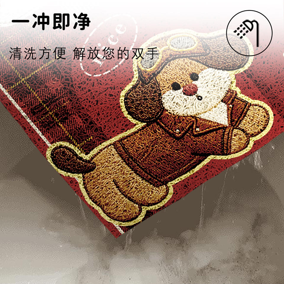 พรมเช็ดเท้าปักลายสุนัขและแมวนำโชค รูปทรงแปลกตา ผ้าไหมลูป ลายปะติดสีแดงอบอุ่น สำหรับทางเข้าบ้าน