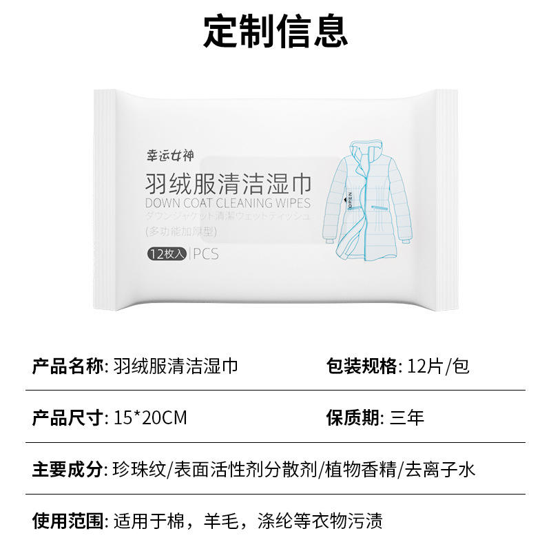 ผ้าเช็ดทำความสะอาดเสื้อแจ็คเก็ตดาวน์ 12 แพ็ค