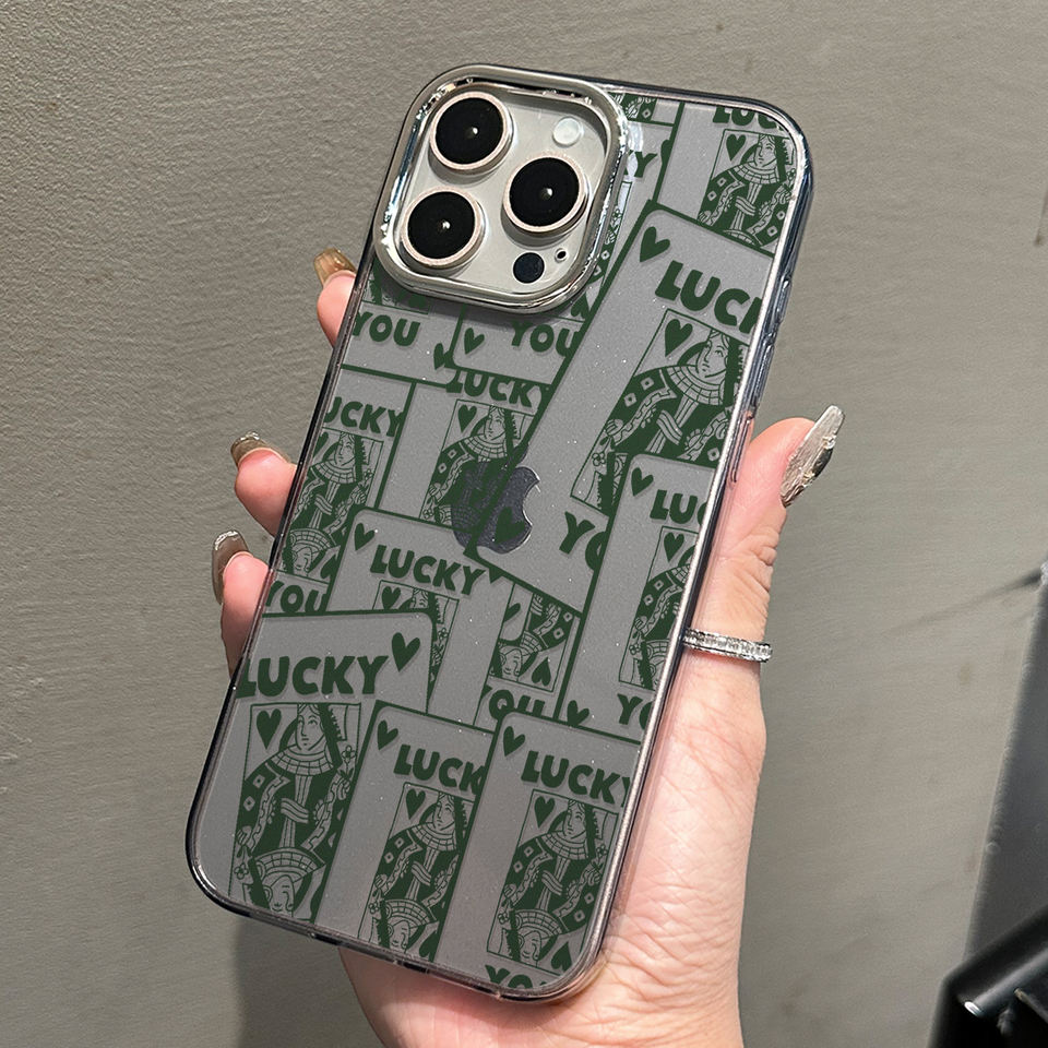 เคสโทรศัพท์แบบใสแวววาวสำหรับเล่นการ์ดที่โชคดีสำหรับ iPhone 17 16 15 14 13 12 PRO MAX กรอบ TPU เนื้อนิ่มกันกระแทกพร้อมเลนส์ป้องกัน