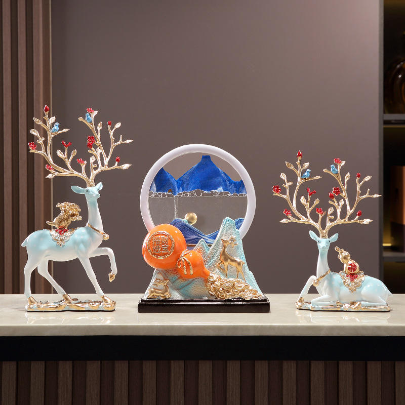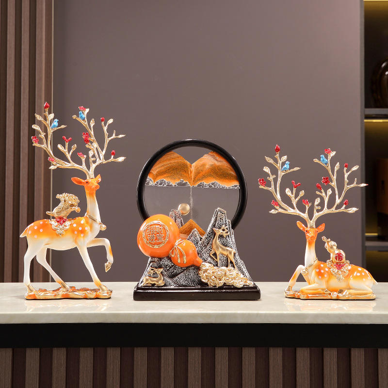 รูปแกะสลักเรซิ่นรูปกวางนำโชค งานศิลปะพื้นบ้าน ของสะสม ตกแต่งบ้าน ของขวัญขึ้นบ้านใหม่