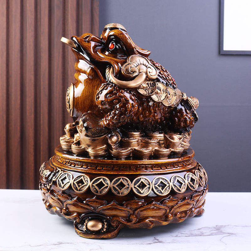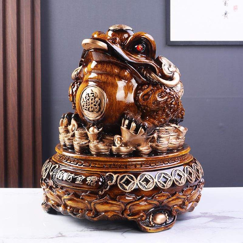 Lucky Golden Three-Legged Toad Figurine Large Epoxy Resin Sculpted Customized Artistic Folk Art Home Office Holiday Collectible