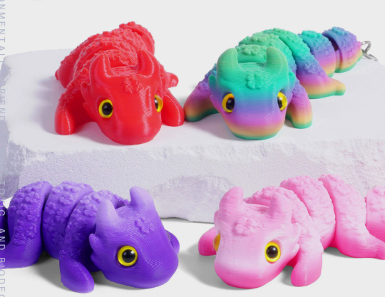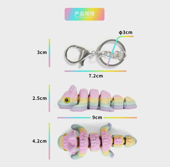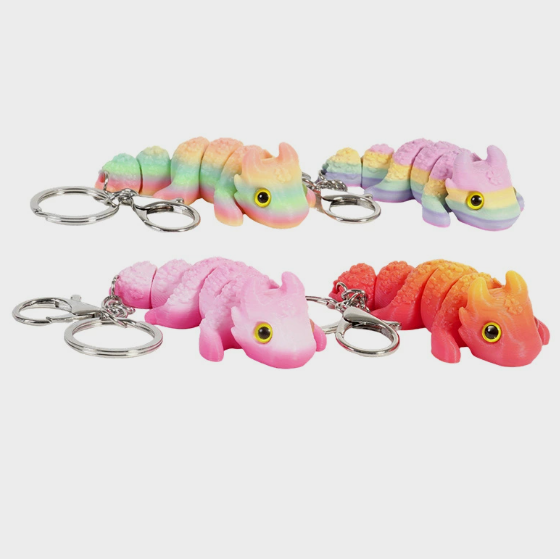 Luckykoo 3D Printed Dragon Key Chain with Bubbling Tail for Children's Safety Backpack/luggage Charm