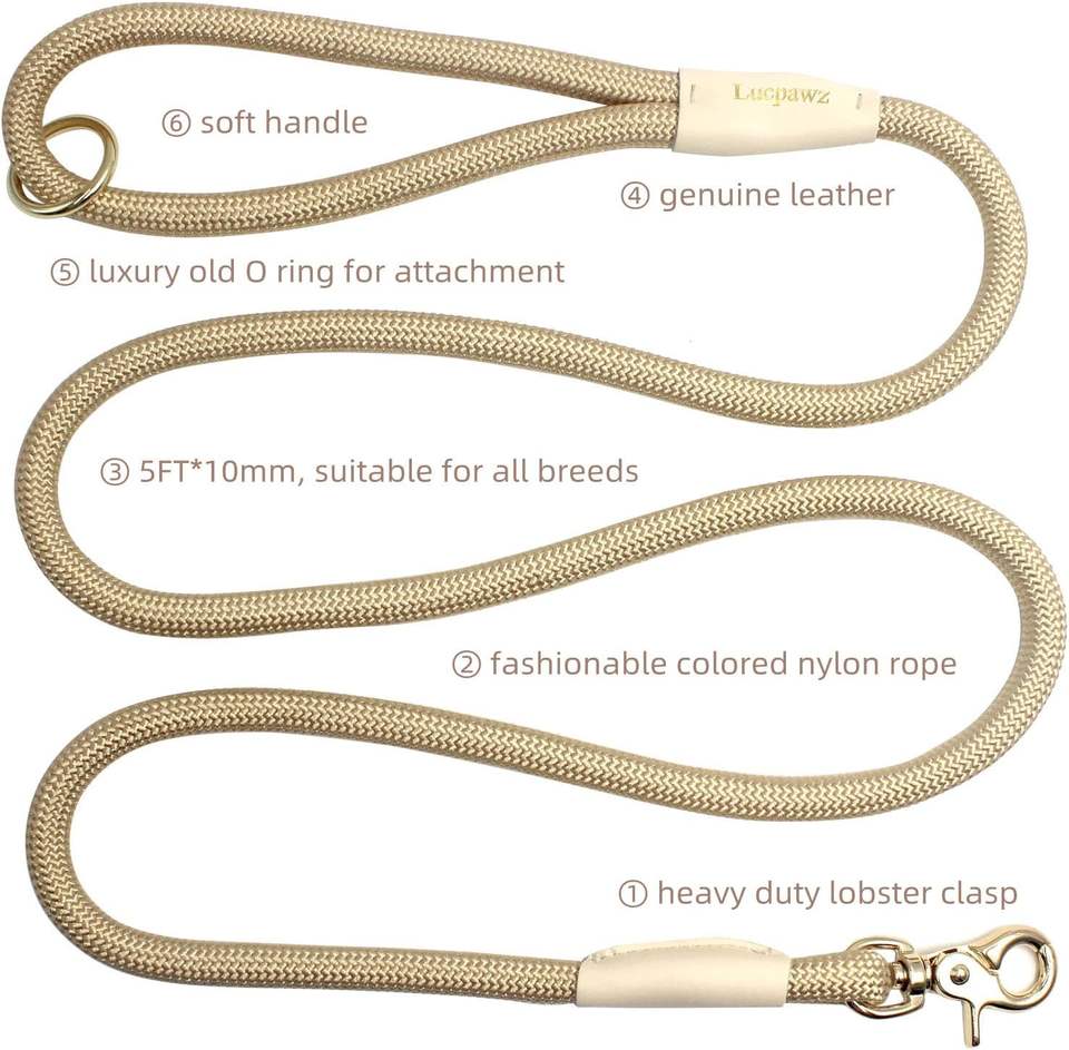 สายจูงสัตว์เลี้ยงแบบสะท้อนแสง Lucpawz รุ่น Lobster Snap ขนาด 5 ฟุต ทำจากไนลอนแข็งแรง (สีทอง 10 มม.)