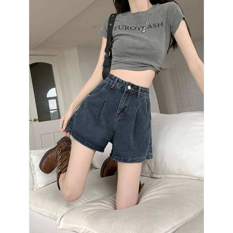 Lucyever กางเกงยีนส์ขาสั้นขากว้างสำหรับผู้หญิงกางเกงขาสั้นทรงเอสีน้ำเงินวินเทจทรงหลวมเอวสูงสำหรับฤดูร้อน