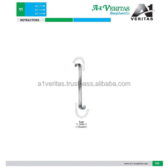 ชุดเครื่องมือผ่าตัดแบบใช้ซ้ำได้ชนิด Luer-Skin Hook Retractor พร้อมด้ามจับรูปสามเหลี่ยมสำหรับการผ่าตัดเล็กน้อย | เอ-1 เวอริตัส ซีลคอต