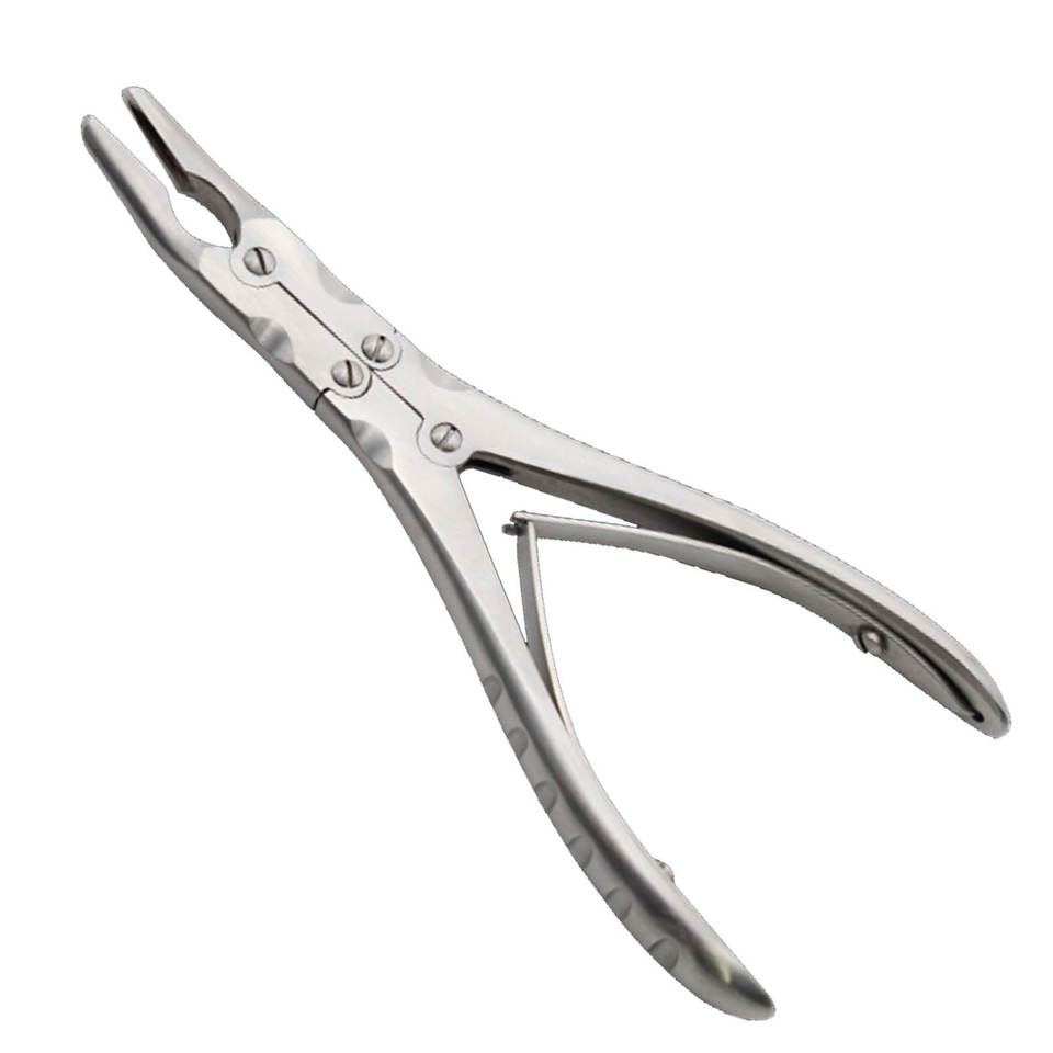 คีมตัดกระดูกแบบ Luer Stille ชนิดคอมพาวด์แอคชั่น ปลายโค้ง ขนาด 10 มม. ความยาว 220 มม. สำหรับศัลยกรรมกระดูกและข้อ ทำจากสแตนเลส ผลิตในปากีสถาน
