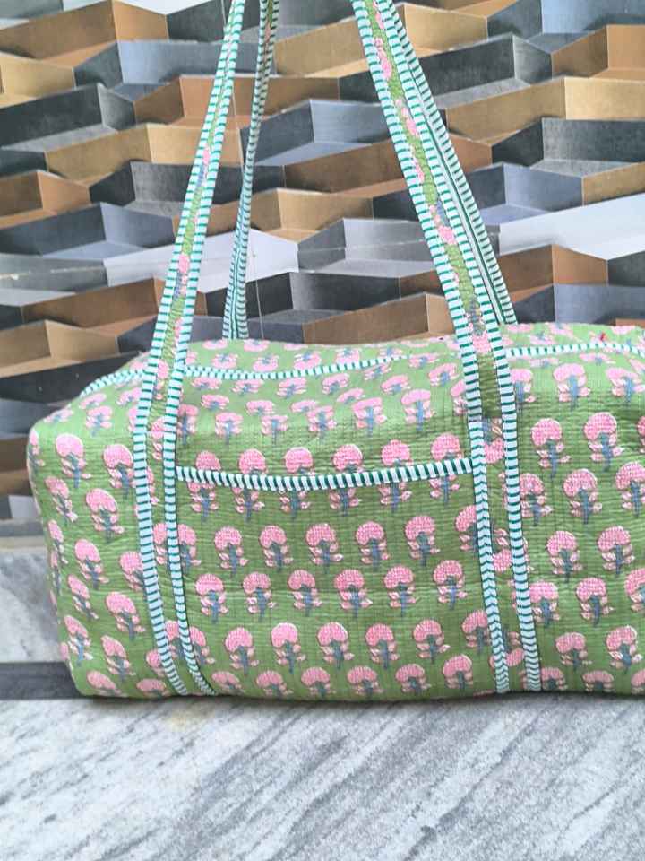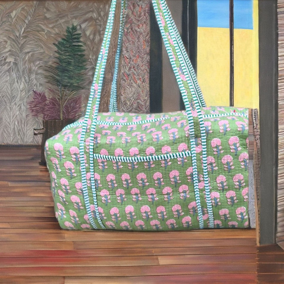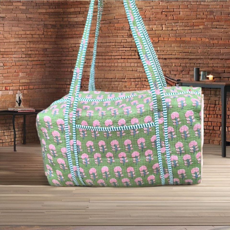 กระเป๋าเดินทางแบบดัฟเฟิล ผ้าฝ้ายลายบล็อกพิมพ์แบบดั้งเดิม ความจุขนาดใหญ่ เป็นมิตรกับสิ่งแวดล้อม น้ำหนักเบา ทนทาน เหมาะสำหรับออกกำลังกาย ทำงาน และเดินทาง