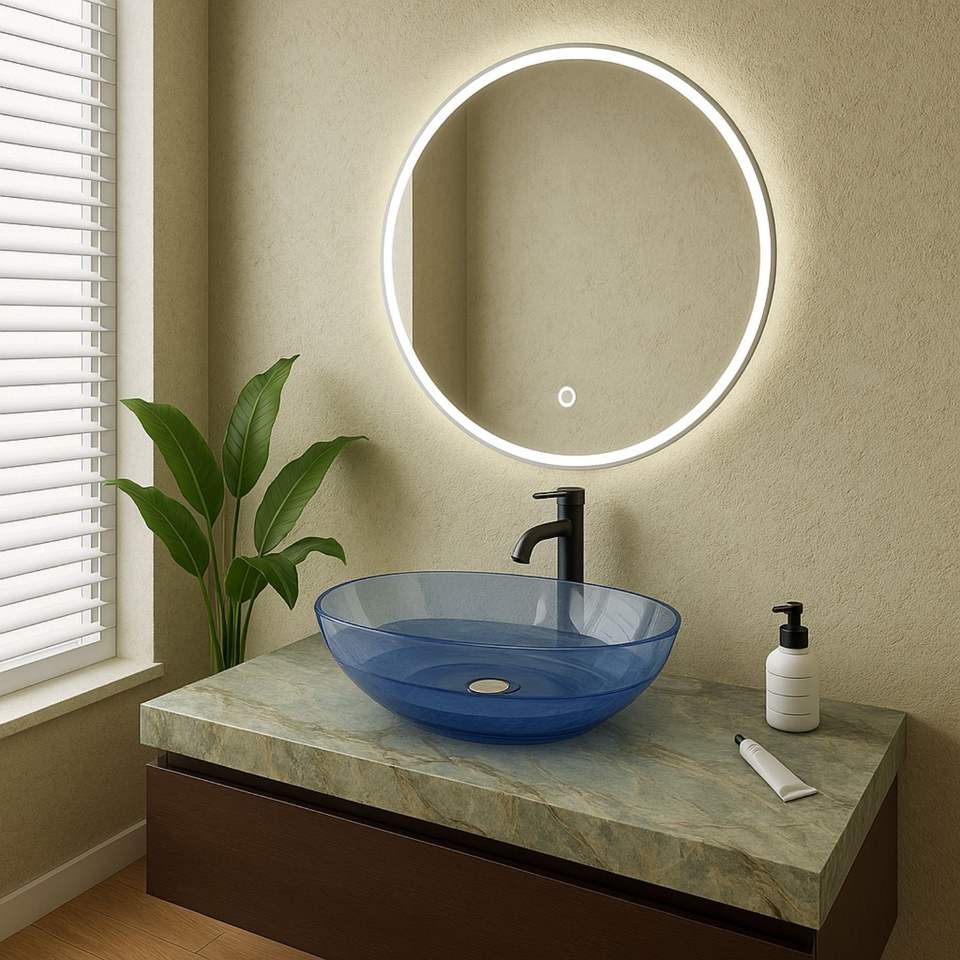 Lullaby อ่างล้างจานเรซินสีฟ้าใส1ชิ้นสำหรับใช้ในห้องน้ำ