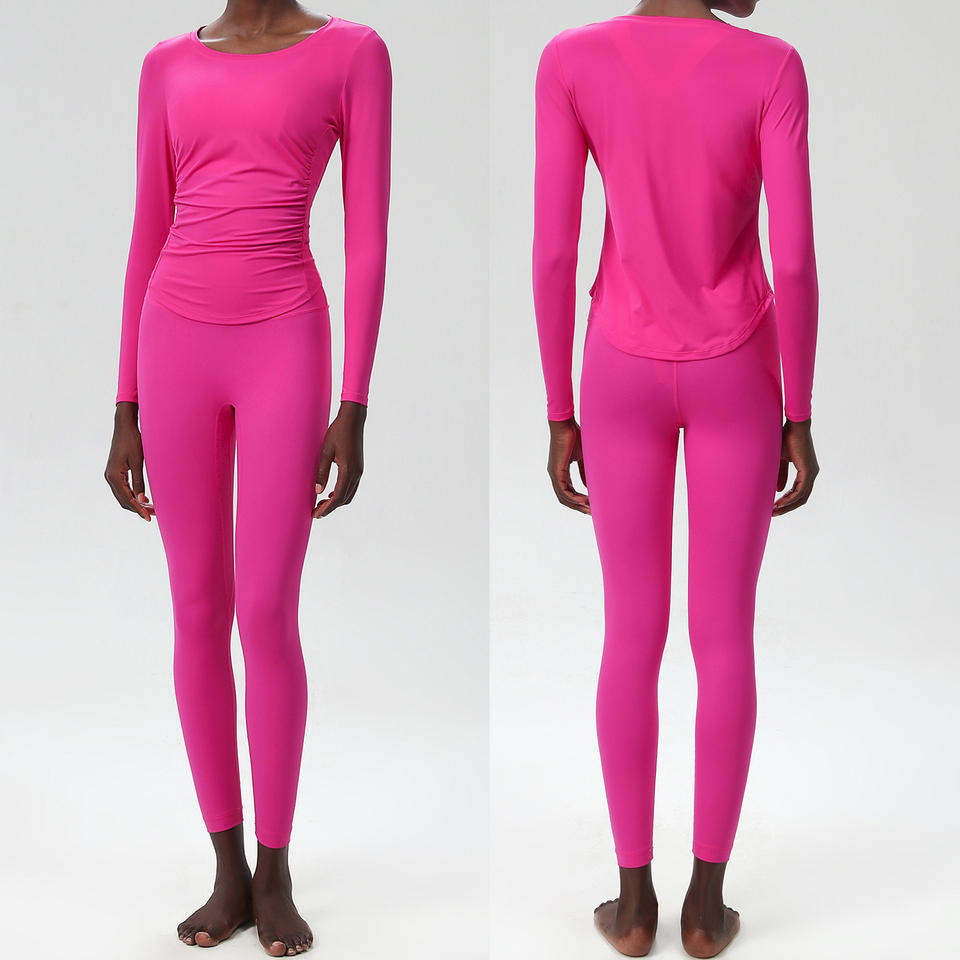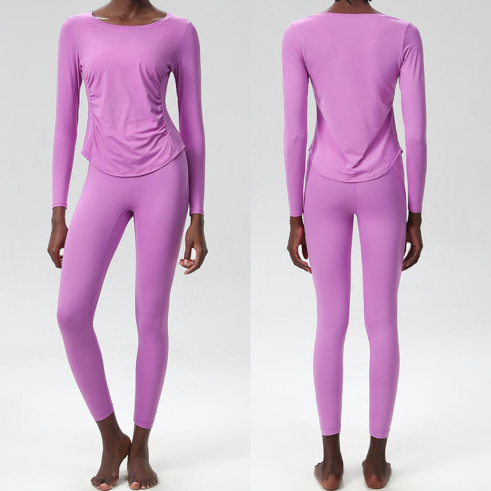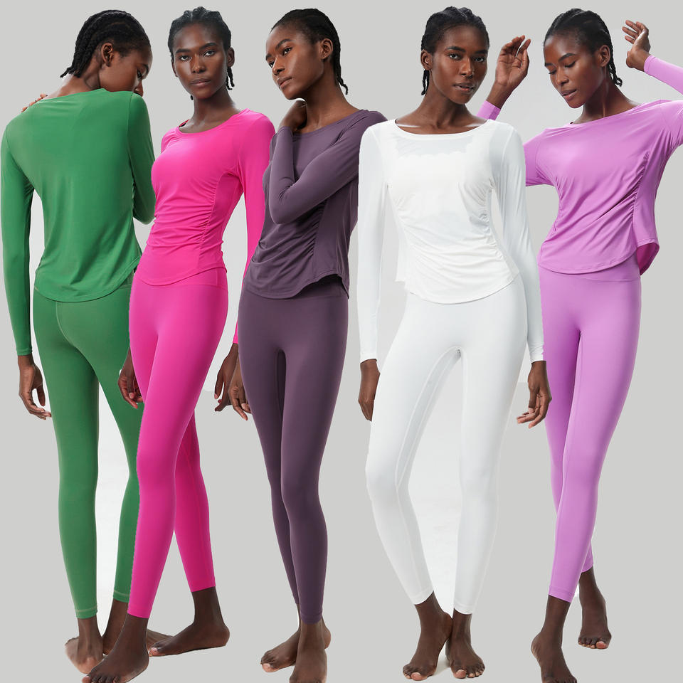 ชุดกีฬาเสื้อยืดผ้าลูลู่สำหรับเด็กผู้หญิง กางเกงเลกกิ้งเอวสูง ชุดออกกำลังกาย แห้งเร็ว ชุดออกกำลังกายสำหรับผู้หญิง