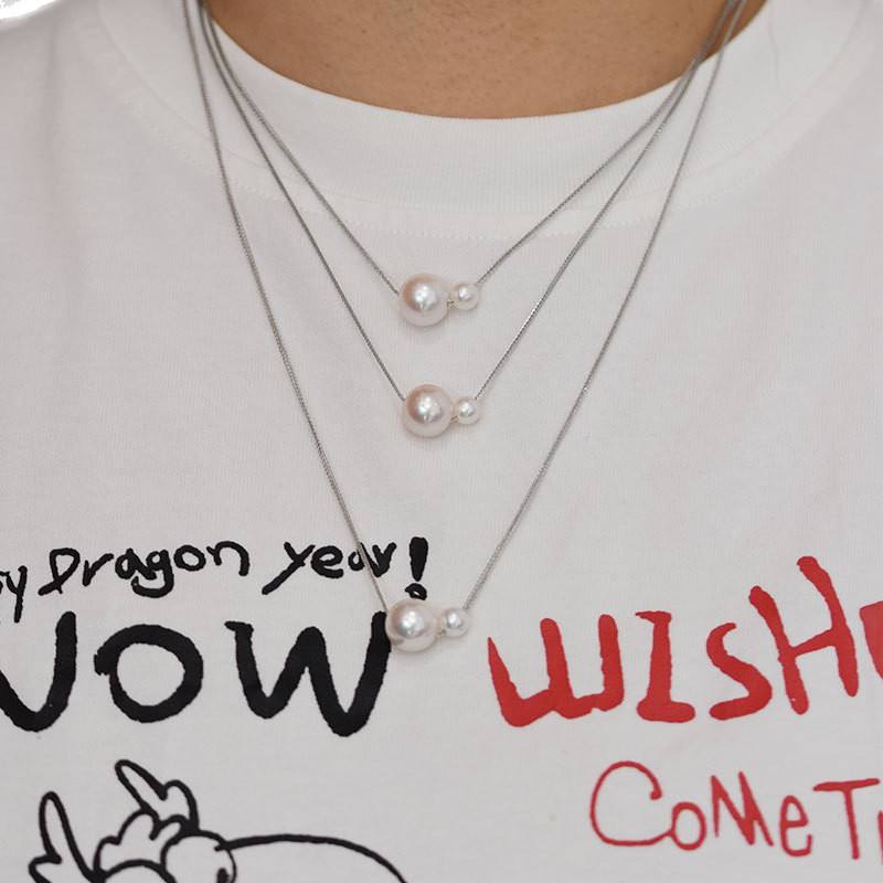 Lulu Tong Light Luxury 7.5-8mm Sea Water Akoya Pearl Pendant Necklace with Cherry Blossom Powder 18K Gold Collarbone Chain