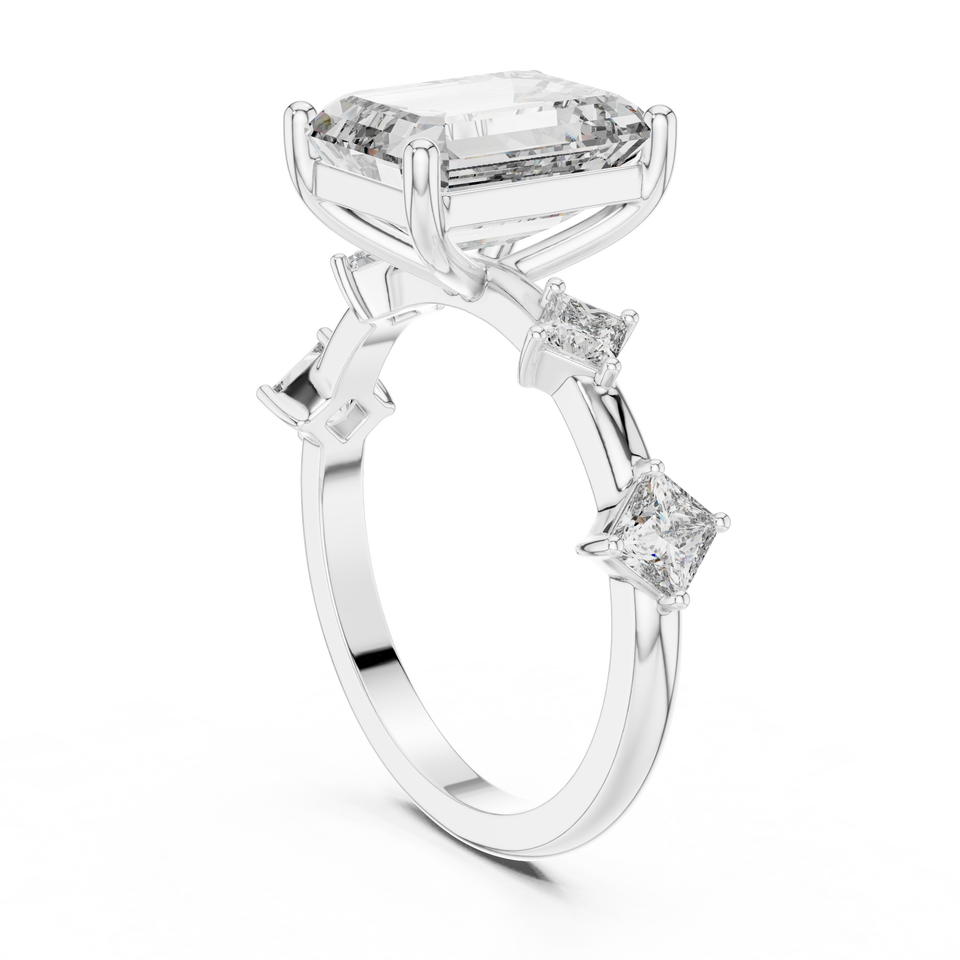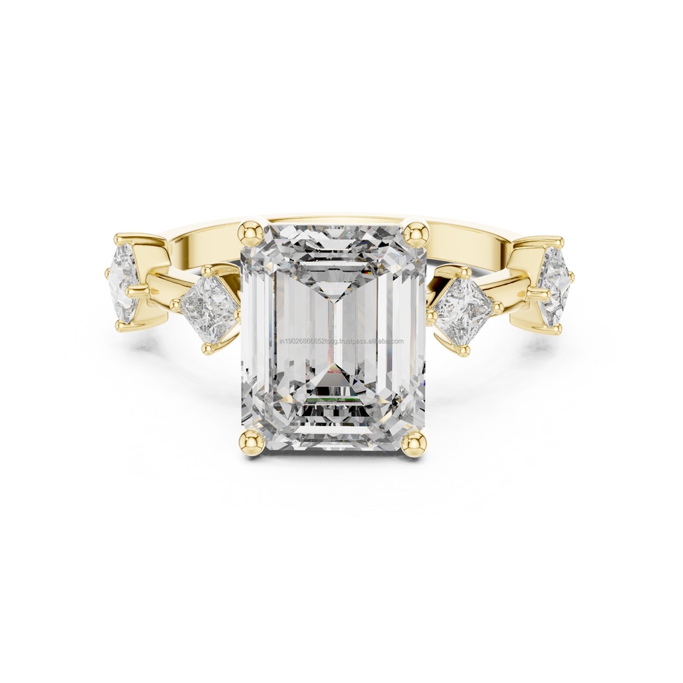 ลูมินอัญมณี14K ทองมรกตตัดลูกบาศก์เซอร์โคเนียแหวนหมั้นกับเจ้าหญิงหินด้านข้างเครื่องประดับเพชรเจ้าสาวหรูหรา