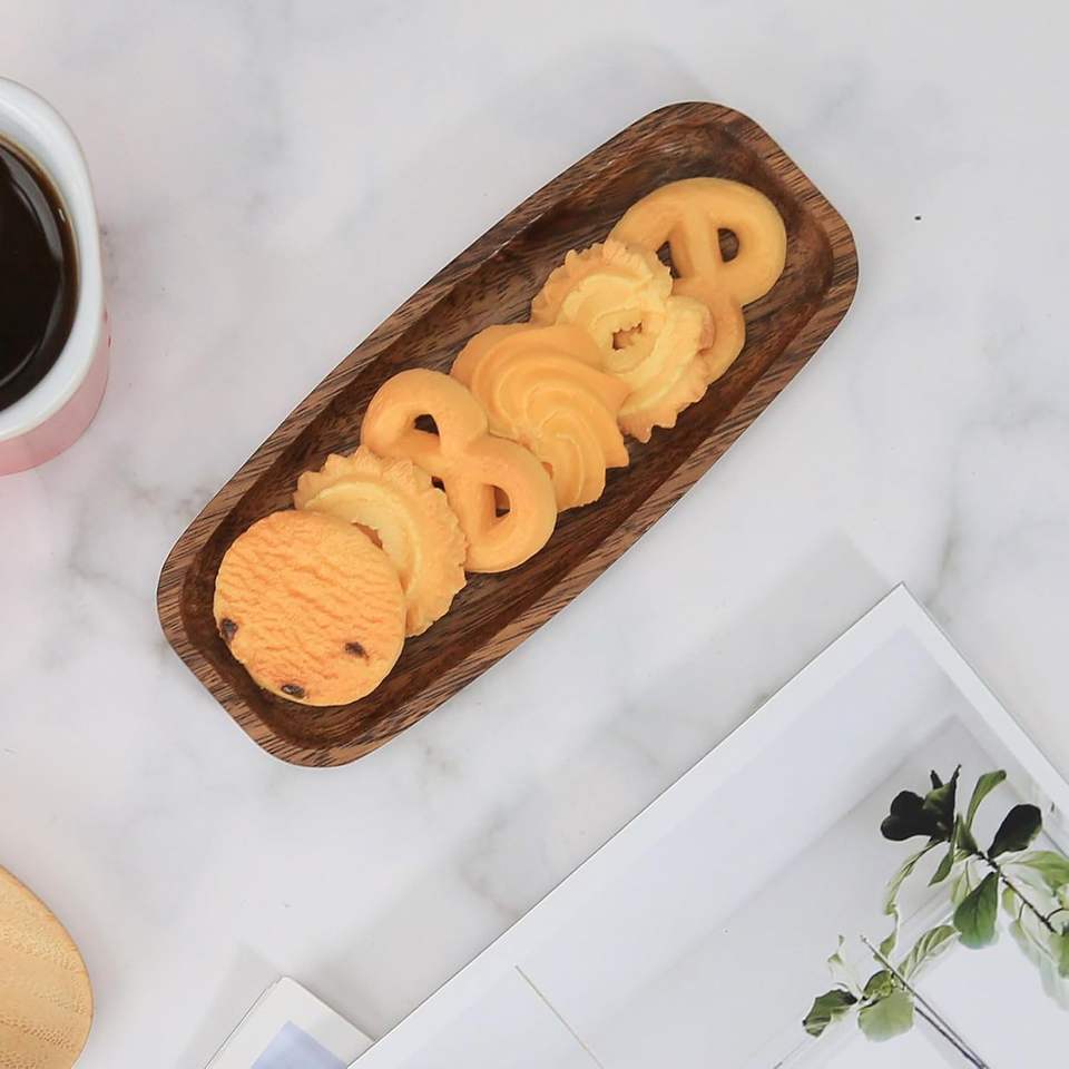 ถาดเสิร์ฟทรงวงรีคลาสสิก ทำจากไม้กระถินณรงค์สีน้ำตาลลูมิน่า น้ำหนักเบา วางซ้อนกันได้ ใช้สำหรับอาหาร/ขนม/ของว่าง/เครื่องประดับ ขนาดเล็ก ทำจากไม้แท้