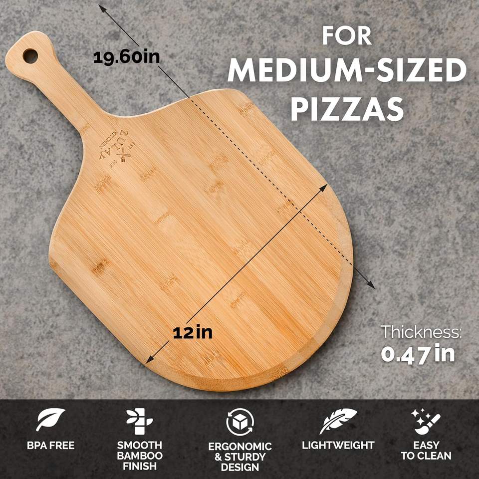 ที่ตักพิซซ่า Lumina Kitchen ขนาดกลาง 12 นิ้ว ทรงสี่เหลี่ยมผืนผ้า ด้ามจับยาว ใช้งานง่าย ขอบเอียง สำหรับอบ ถ่ายโอน และเสิร์ฟ