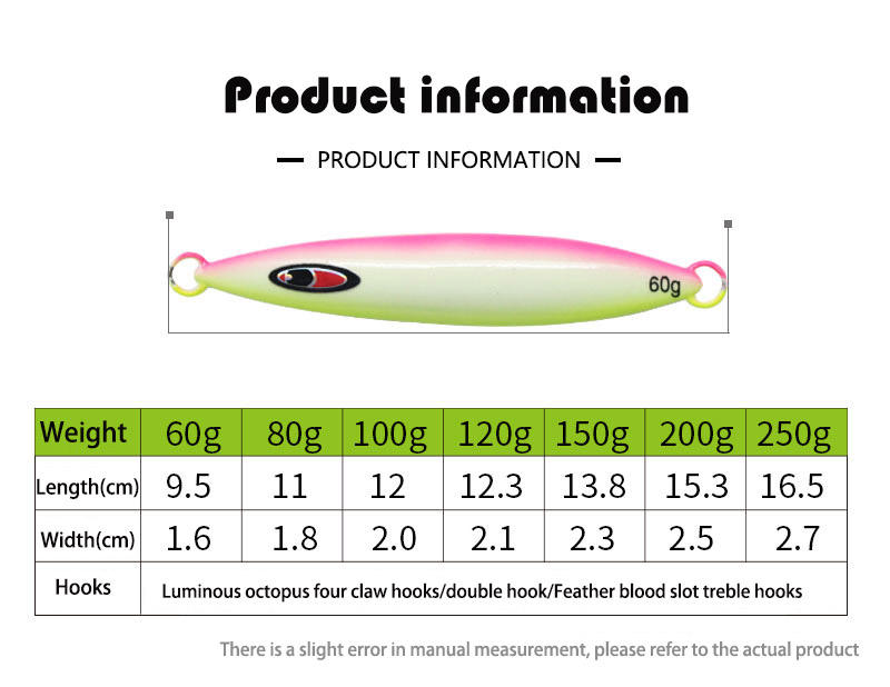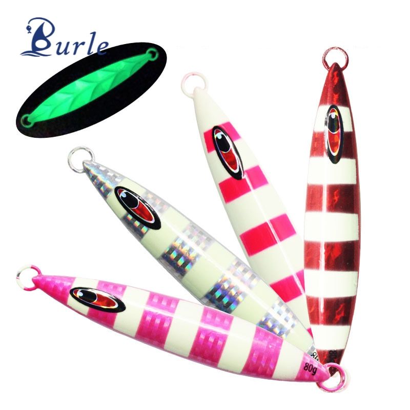 เหยื่อจิ๊กเรืองแสงแบบจมช้า สำหรับตกปลาทะเล น้ำหนัก 60 กรัม 80 กรัม 100 กรัม 150 กรัม 200 กรัม สำหรับตกปลาจากเรือ