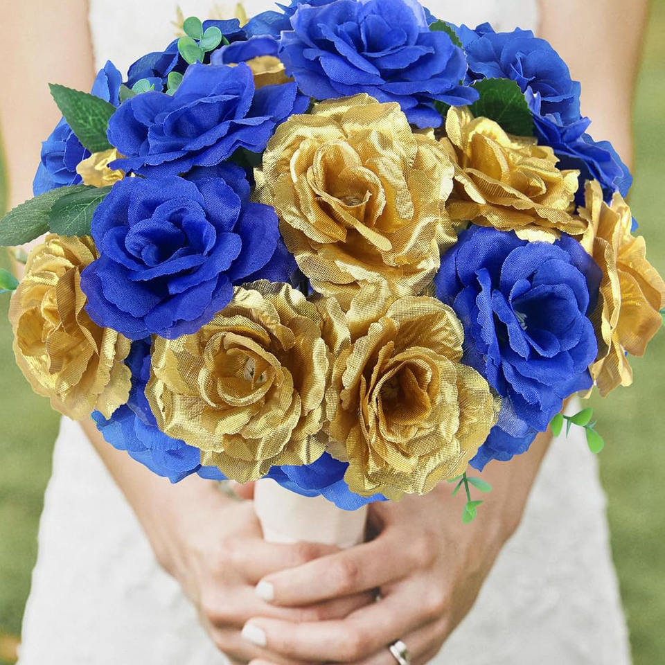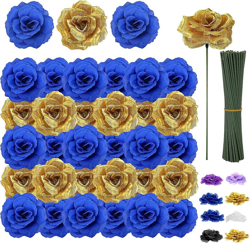 ดอกกุหลาบประดิษฐ์สีทองประกายวิบวับ ดอกกุหลาบปลอมแบบไม่มีก้าน สำหรับตกแต่งงานแต่งงาน งานฝีมือ DIY