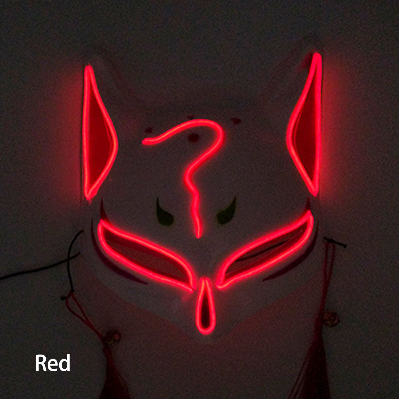 หน้ากากคิทสึเนะญี่ปุ่นเรืองแสงพร้อมไฟนีออน LED หน้ากากคอสเพลย์ปาร์ตี้เรืองแสงในที่มืดหน้ากากจิ้งจอกสำหรับไนท์คลับ