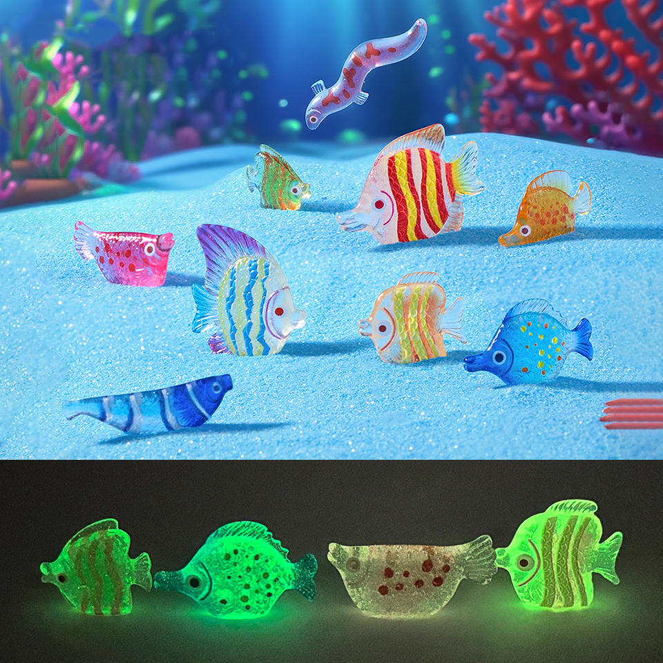 ตุ๊กตาปลาเรซิ่นขนาดเล็กเรืองแสงในที่มืด ของตกแต่งสวน ตู้ปลา บ้านตุ๊กตา งานฝีมือ ของประดับตกแต่ง