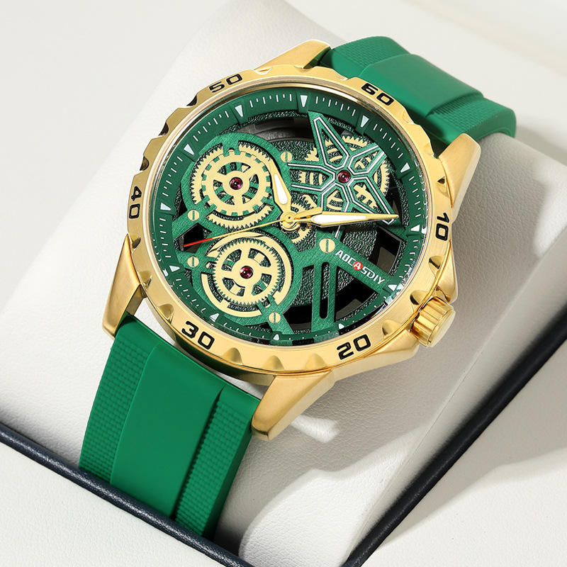 นาฬิกาสปอร์ตเรืองแสงของผู้ชายนาฬิกาข้อมือควอตซ์หน้าปัดใหญ่สายซิลิโคนนาฬิกาอินเทรนด์