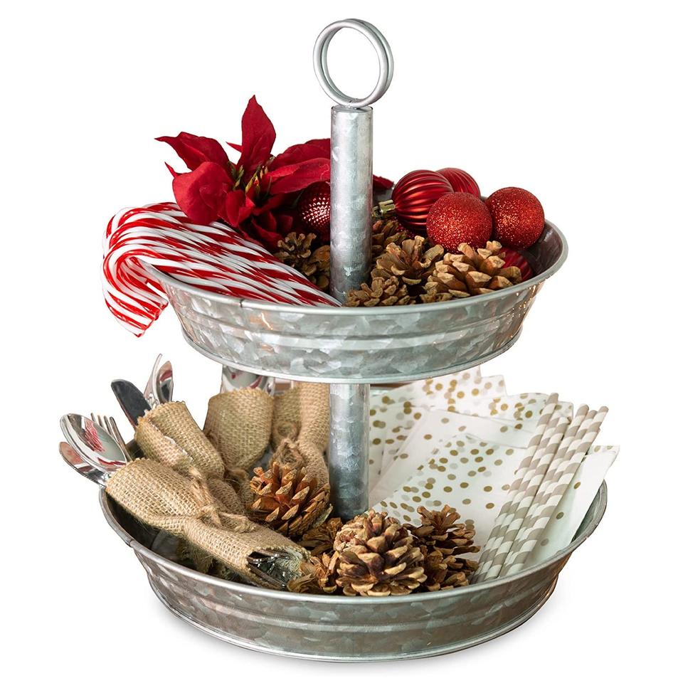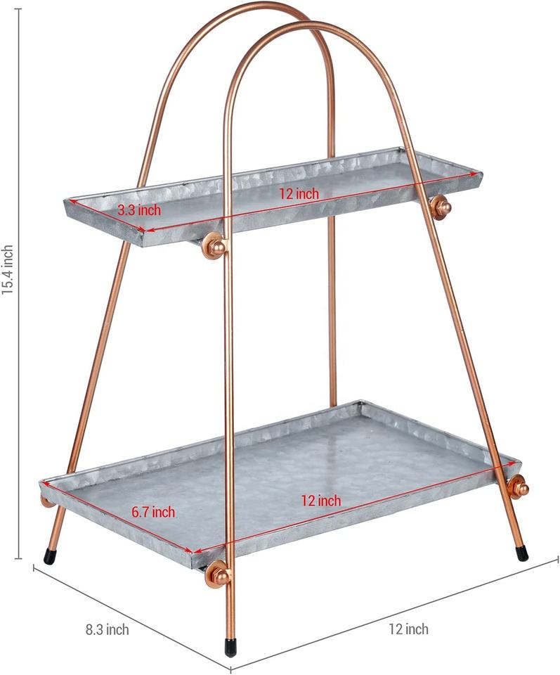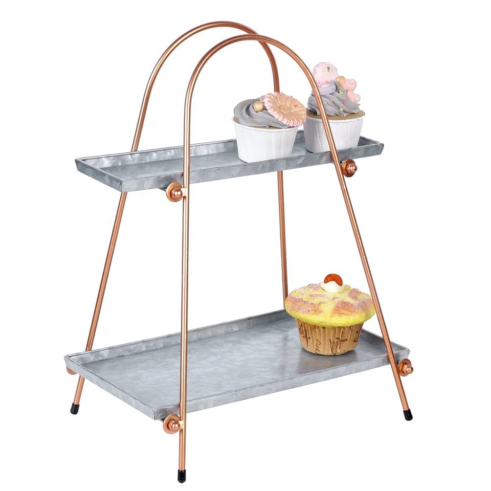 ขาตั้งเค้กชุบสังกะสีสไตล์ส่องสว่างพร้อมขาตั้งทองแดงสองชั้นของหวานสี่เหลี่ยมมัลติทาสกิ้ง