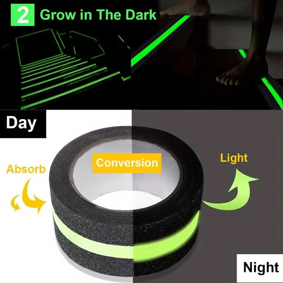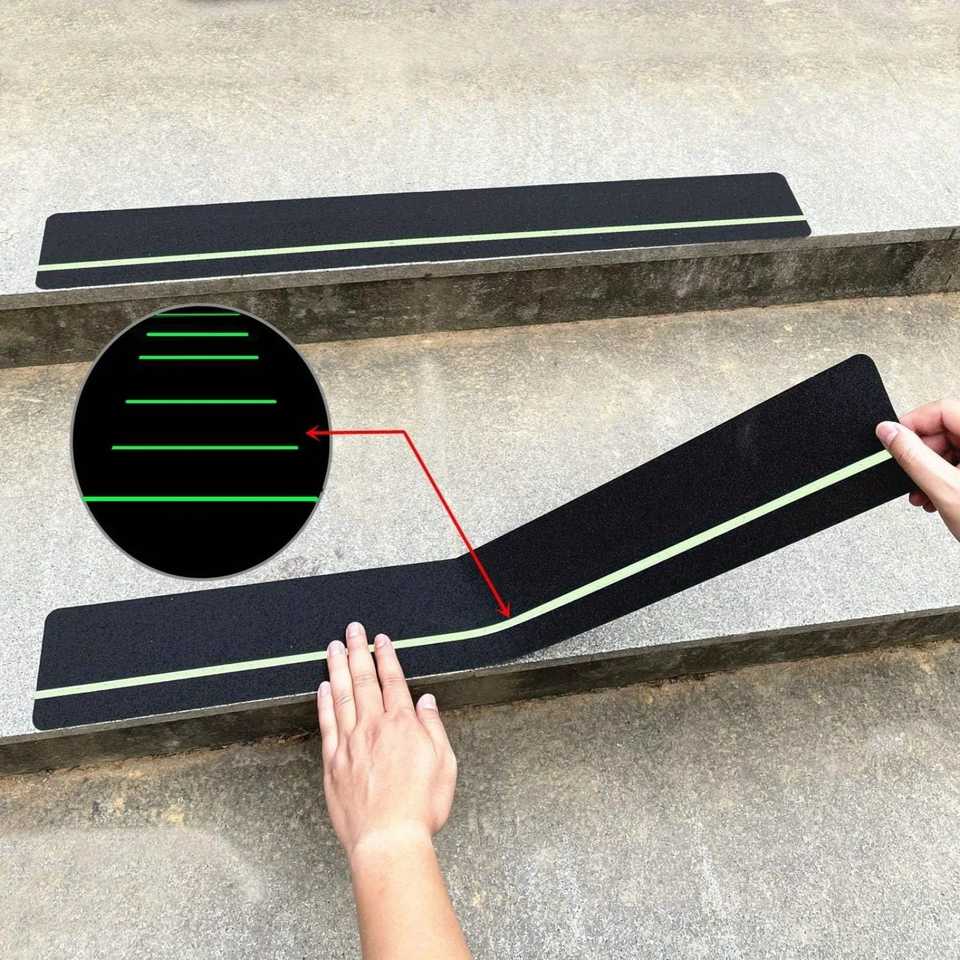 แถบความปลอดภัยของกระเบื้องเรืองแสงได้รับการออกแบบด้วยพื้นผิวสติกเกอร์กันลื่นกันน้ำและเพิ่มพื้นผิวเทปยึดเกาะเพื่อการป้องกันในเวลากลางคืน