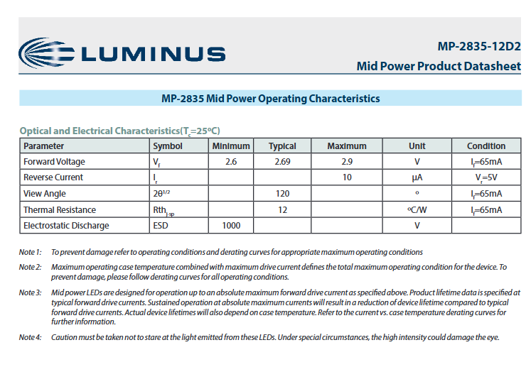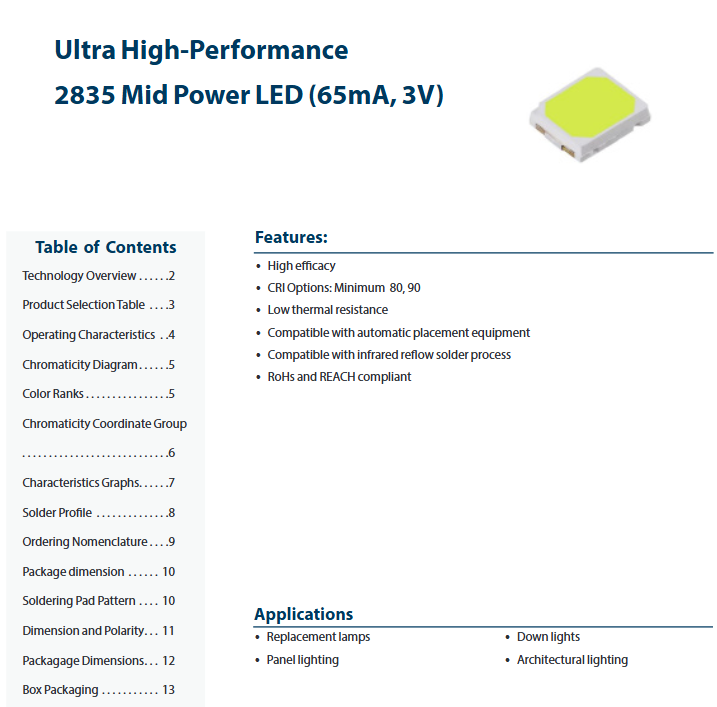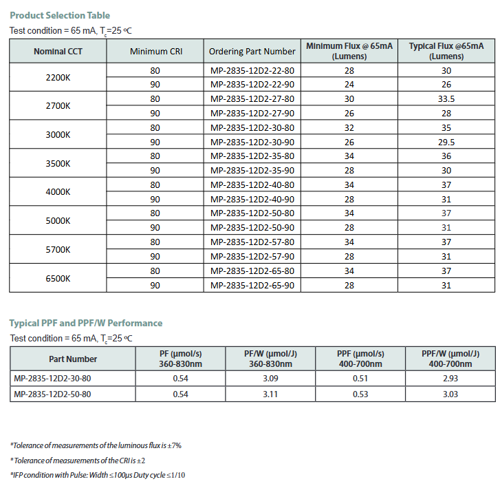 ชิป LED SMD สีขาวธรรมชาติ Luminuss MP-2835-12D2-40-80 รุ่น MP-2835 ซีรีส์ 4000K Ra90 มุมมอง 120 องศา กำลังไฟ 175mW