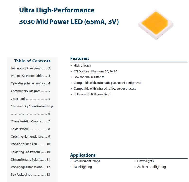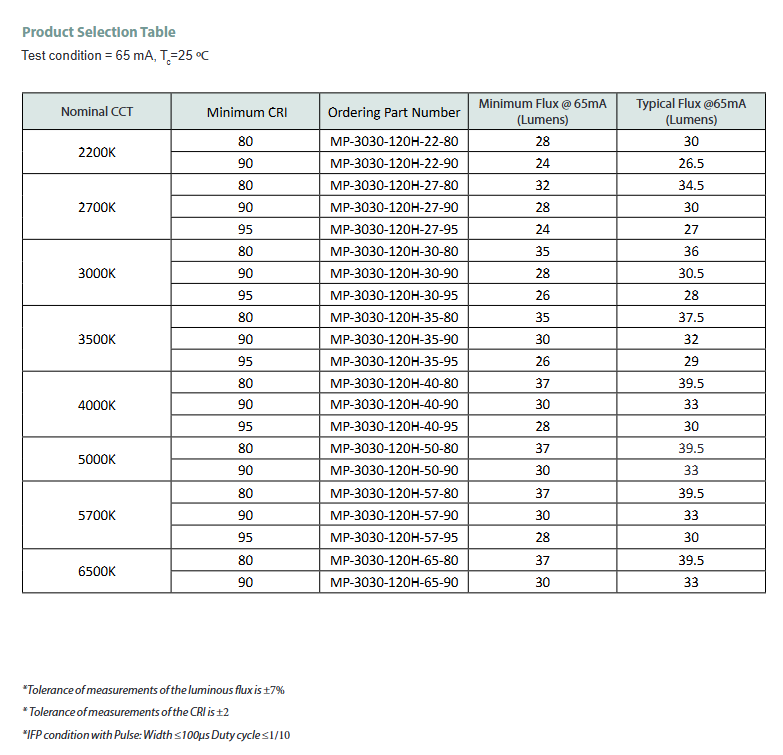 ชิปไฟ LED รุ่น Luminuss MP-3030-120H-40-80 ซีรีส์ MP-3030 สีขาว 4000K ค่า CRI 80 มุมมองการรับแสง 120 องศา ประสิทธิภาพ 230 ลูเมนต์/วัตต์